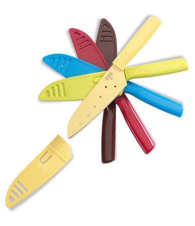 This by far is the most awesome knife I have ever used. I got the blue one at Dillard's for less than $11.00 back in January. It slices, it dices, it chops, it does everything that a knife is supposed to do. As if that wasn't enough, it come with a plastic cover for the blade to use during storage, which means no more cut fingers while digging through your knife drawer!